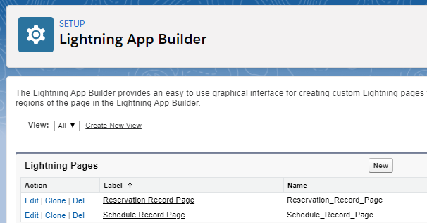 Go to Setup, and then to the Lightning App Builder. Click New.
