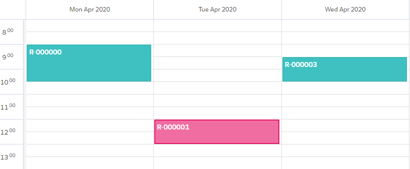 The Horizontal Calendar component will show a calendar with times and dates on the horizontal (top) axis. On the vertical (left) axis it will show all the records as row headers.