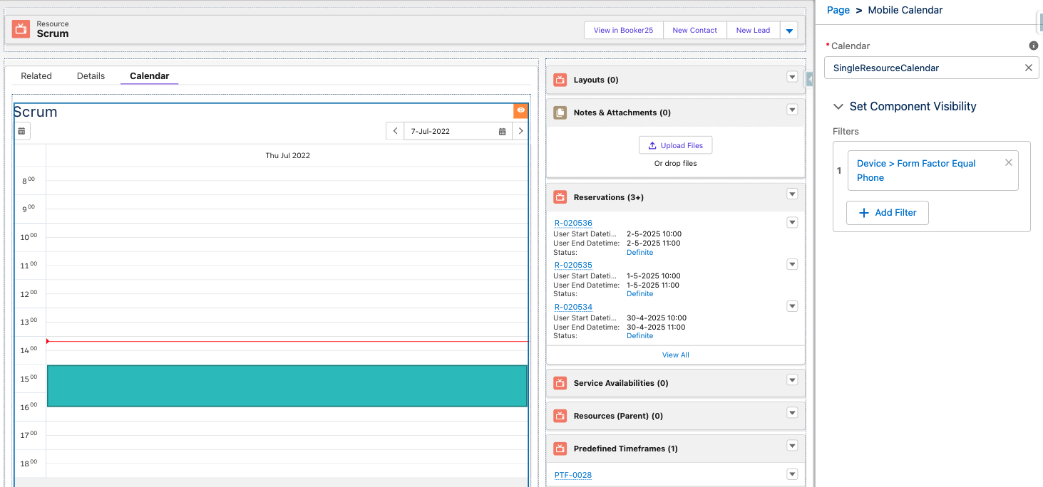Adding the Mobile Calendar Component in the Lightning Page Builder on Desktop