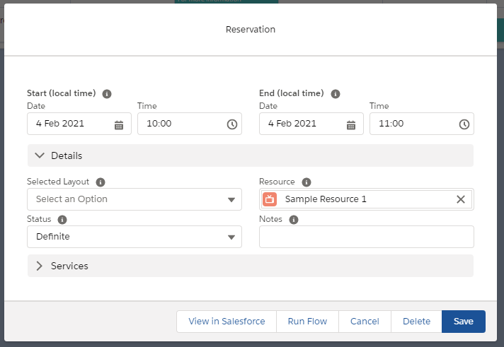 This button will now be added to the reservation form. On click, it will perform the logic in the VisualForce page's controller on the reservation record.