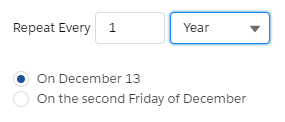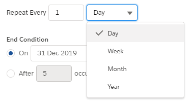Choose a recurrence pattern. This can be expressed in days, weeks, months, or years.