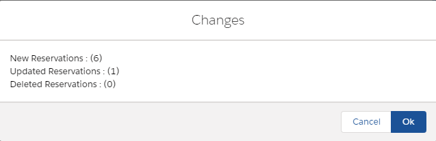 Once satisfied with the recurrence pattern and end condition, click Save. A popup will inform you of the pending changes. When first making a Reservation recurring, this overview will indicate a number of new Reservations to be created, and one Reservation to be updated. This is the current Reservation which will have its Recurring Reservation field set.