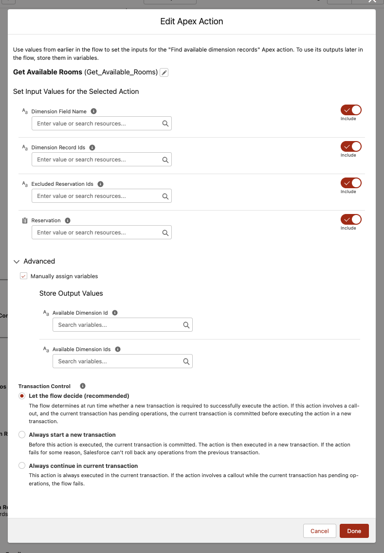 Excluded Reservation Ids | List of IDs of Dimension records to exclude |