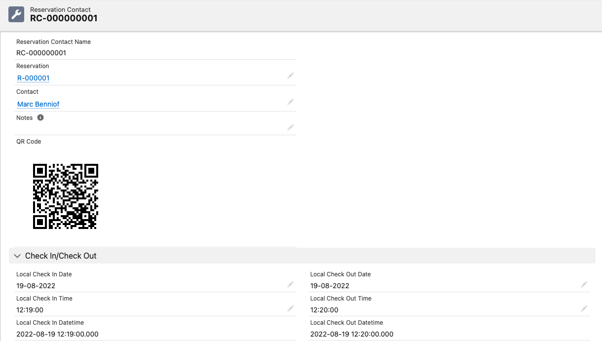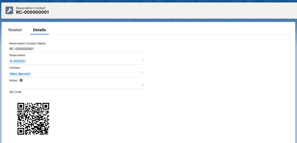 When reservation contacts are added to a reservation we automatically create a QR-code for that record. The QR links to the record itself and can be shared with the contact. We’ve created a sample flow and email template for this purpose. Using flow templates to send email | Send-QR-Email-To-Reservation-Contact Or share the QR code in another way.