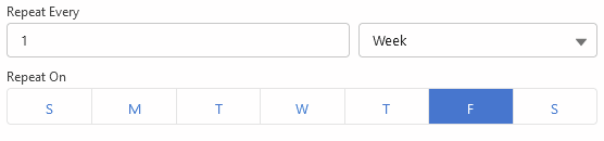 For “Repeat Every”, you can either choose Day, Week, Month or Year. According to which of these you choose, some more options will appear. If you choose Week, for example, you will be able to choose which days of the week the reservation should occur: