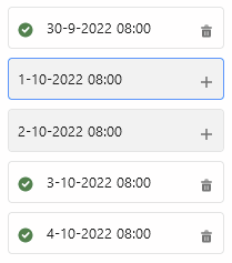 It is also possible to remove reservations from the series by clicking the garbage can icon. These will remain visible in your list and can be restored by clicking the plus icon, if you change your mind.