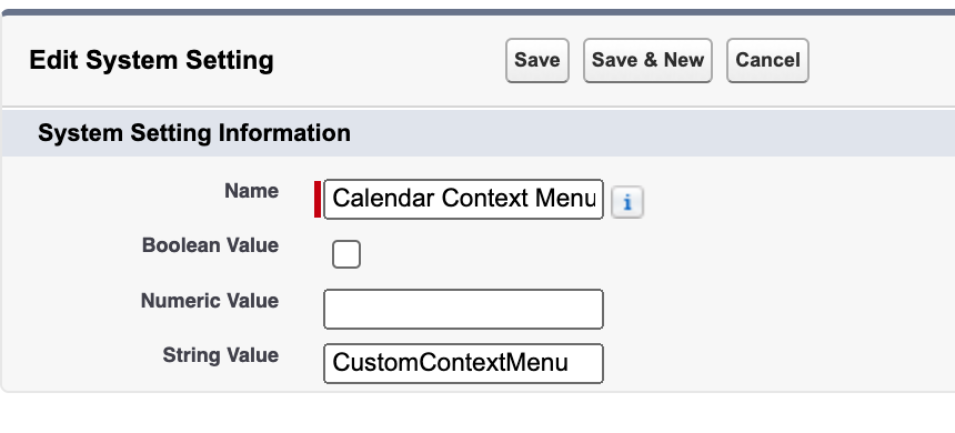Create a new Setting named ‘Calendar Context Menu Class’.