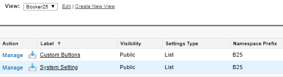 In the list of custom settings, find the entry named ‘System Setting’ in the B25 namespace, and click ‘Manage’:
