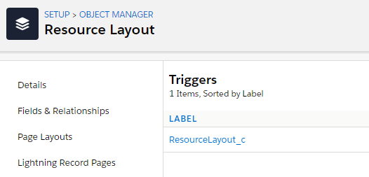 In setup, go to the Object Manager and then to the Object that you want to disable the trigger for. Click on Triggers and note the exact name of the trigger, ‘ReservationLayout_c’ in the case of this example: