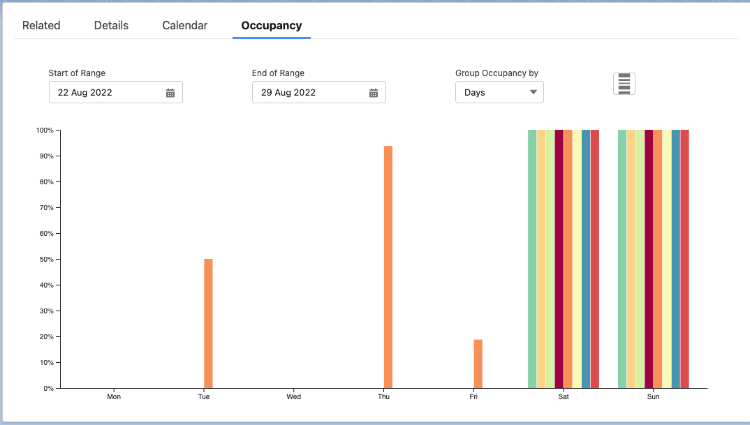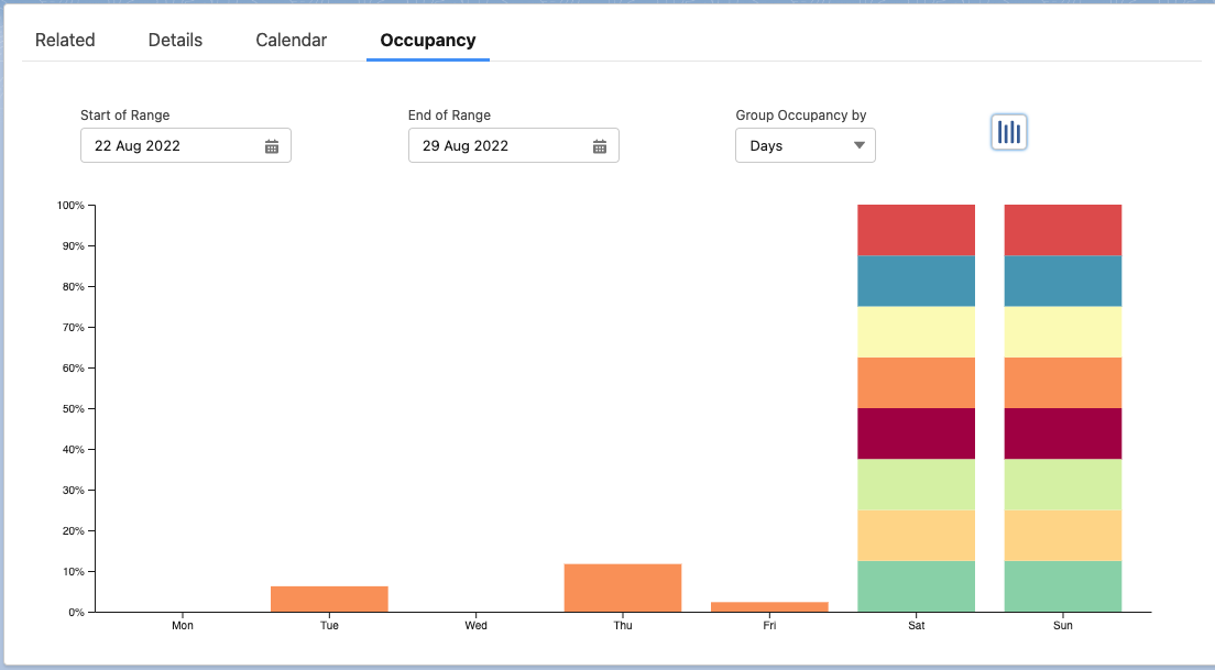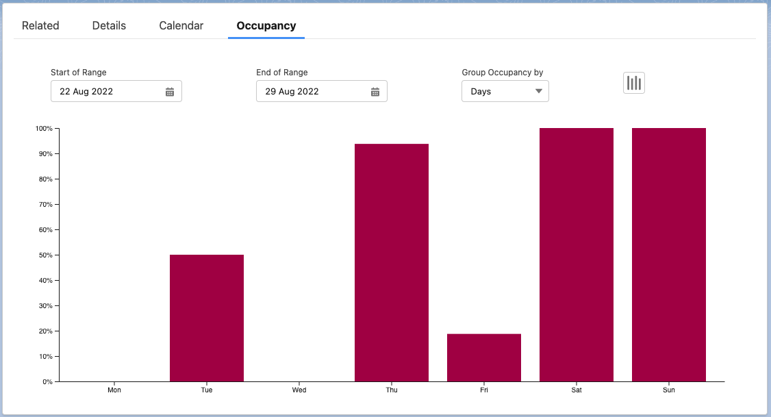 Group Occupancy by | The grouping of the occupancy bars the start and end of the ranges are rounded to fix the grouping. |