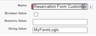 Create a new Setting named ‘Reservation Form Customizer Class’.