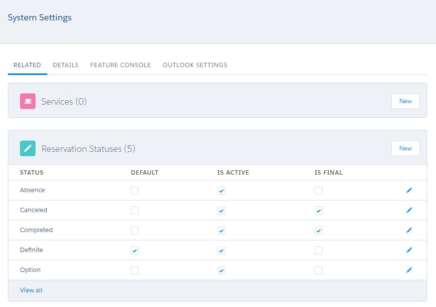 You can define which Statuses are valid for each Reservation Type. Whenever you create a new Reservation Type, each existing Status is automatically linked to it. Likewise, whenever you create a new Status, it is automatically linked to each existing Reservation Type. You can control which Statuses are valid for which Types by removing these links:
