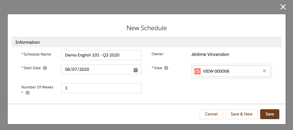 You are now taken to a Schedule record page, which should look something like this