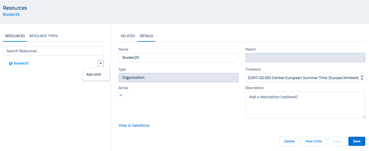 Once you have set up you organisation's Resource Type hierarchy (the overall backbone of your organisation), you can start creating the actual Resource hierarchy. This process is similar to the one of creating the Resource Type hierarchy.