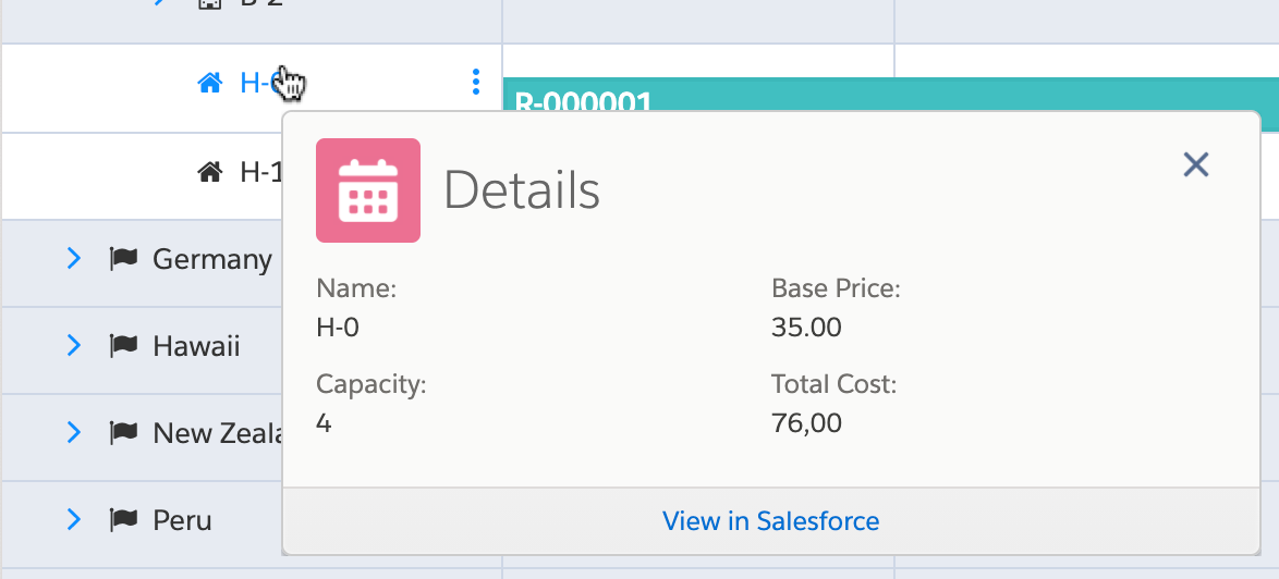 You can use Resource Display Contexts to conditionally display information on a Resource hover (or any other Dimension hover) on a calendar, depending on factors such as the Resource Type, or the current View the user is on. Similar to the Reservation hover, a Hover Definition is used to define the fields which will be shown on the hover.