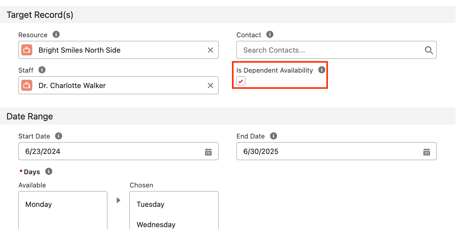 Note: Make sure Is Dependent Availability is ticked